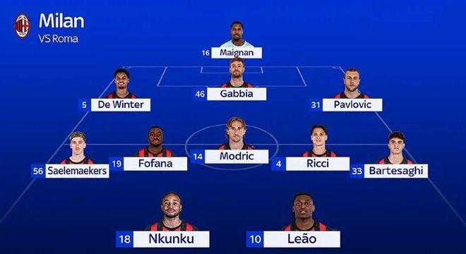 意大利天空體育給出了本場比賽米蘭的預(yù)測首發(fā):